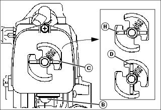 4. Move choke lever (C) to the "CHOKE" position (D).