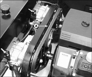 13. Cycle control levers forward and rearward several times. Check for leaks around filter. 14. Stop the engine. Check oil level. Add oil as necessary. Checking and Replacing Pump Drive Belt