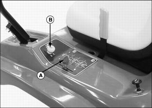 · The yellow indicator light (B) means the battery is not getting enough charge from the alternator. · If the battery voltage is low enough, the light will illuminate. · If the battery is fully charged, the light will not come on. Using the Park Brake LeverLock park brake or use as emergency stop:1. Raise park brake lever (A) to lock park brake. Unlock park brake:· Lower park brake lever (A) to unlock park brake. Using Free-Wheeling Levers