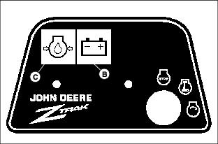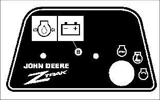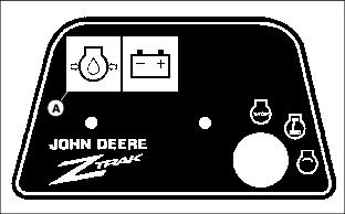 · The red indicator light (A) means the oil is low and/or the oil pressure is low. · The indicator should illuminate when the key switch is turned to the run position. · The light should go out when the engine starts. Battery Indicator