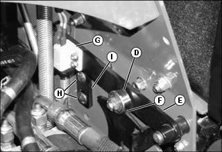 · If neutral switch sensitivity needs to be increased, adjust switch contact bracket (I) down in slots.