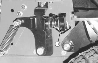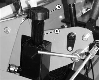 3. If rear wheels continue to rotate when motion control levers are in neutral, adjust neutral adjustment knob(s) (B) located on each side of machine.
