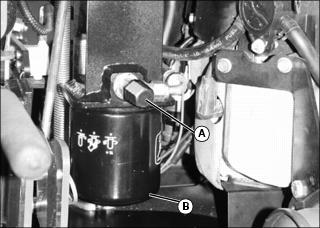 5. Turn oil filter (B) counterclockwise to remove.