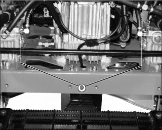 4. Clean hydraulic oil cooling fins (D) on each hydraulic pump with a rag, brush or compressed air.