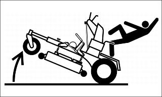 To avoid injury from tipover, drive across slopes, not up and down. If machine stops going uphill, stop blades and back down slowly.