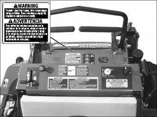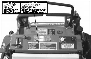 · Never lubricate, service, or adjust machine while it is moving or the engine is running. Keep safety devices in place and in working condition. Keep hardware tight.