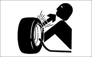 · When inflating tires, use a clip-on chuck and extension hose long enough to allow you to stand to one side and not in front of or over the tire assembly.