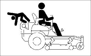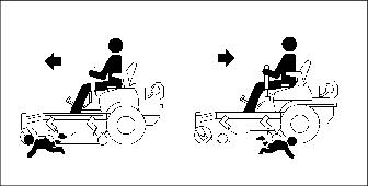 To avoid injury to children, stop mower when children are near. Do not mow in reverse. Look behind when backing. Never carry riders, especially children.