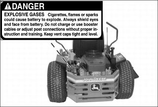 · Cigarettes, flames or sparks could cause battery to explode. Always shield eyes and face from battery. Do not charge or use booster cables or adjust post connections without proper instruction and training. Keep vent caps tight and level.