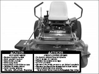 · Never fill fuel tank or drain fuel from a machine in an enclosed area. Fill fuel tank outdoors.