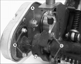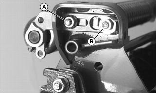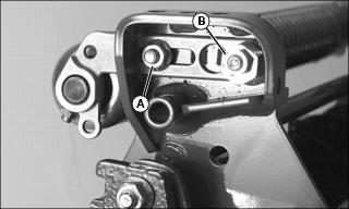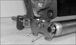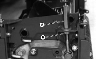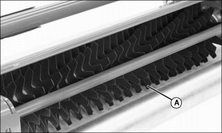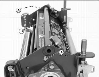 NOTE: Before making adjustment, measure the usable blade length of the cutting blades. If the usable blade length is less than the desired cutting depth, replace blades before continuing. 3. Adjust cutting depth, mark the desired cutting depth (A) on a gauge bar. 4. Place the gauge bar across the front and rear rollers approximately 50 mm (2 in.) in from the end of the rollers. 5. Adjust the front roller height to bring the leading edge (B) of the cutting blade with the mark on the gauge bar. Rotate reel back and forth to ensure blade tip does not extend beyond depth mark. 6. Adjust pivot arms to raise or lower the cutting blades, if desired depth cannot be achieved with roller adjustment. 7. If vertical cutter cannot be adjusted because of wear, move rear adjuster bolts to top holes (C). 8. Adjust front adjuster bolts in slot (D) evenly on both ends of cutting unit as necessary. 9. For excess thatch conditions, several trips across the area to be thatched may be necessary. Do not attempt to remove large amounts of thatch in a single cutting. Adjust Reel Speed