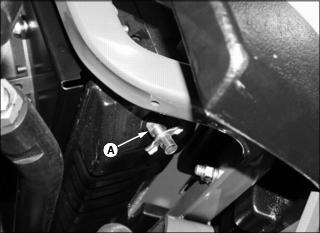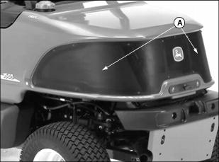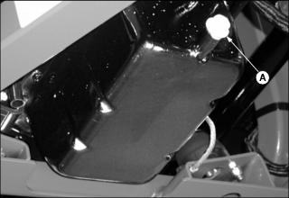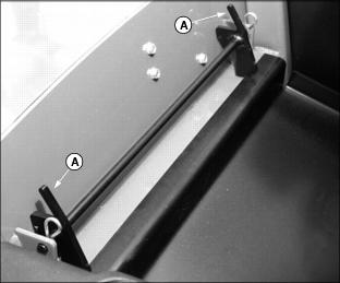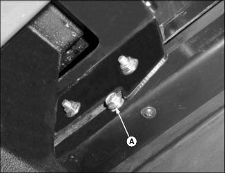2. Remove cap screw (A) from inside edge of engine cover slides, on left and right side of machine.
