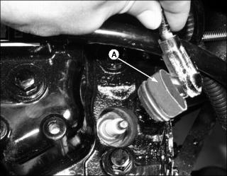 5. Pry the spark plug wire boot (A) up from the engine block using a small screwdriver.