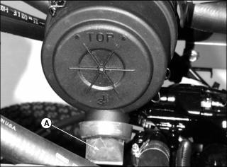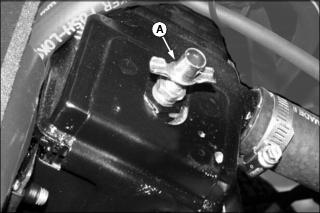 3. Remove dipstick (A) located on the left side of the engine. Wipe dipstick with a clean cloth.