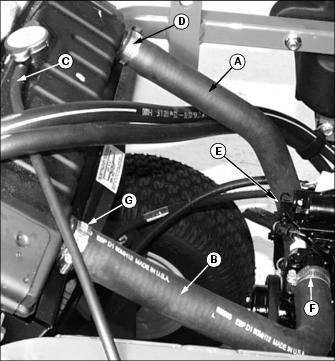 NOTE: Coolant recovery tank is used to catch overflow from radiator, and will remain about half full during operation. Coolant will flow back into radiator as needed after system cools.