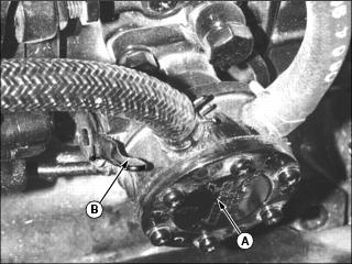 · If oil is above level (B) on the dipstick, drain to proper level.