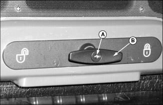 1. Engine cover latch must be unlocked before opening the engine cover. Insert key in slot (A) and turn counter clockwise to unlock latch.