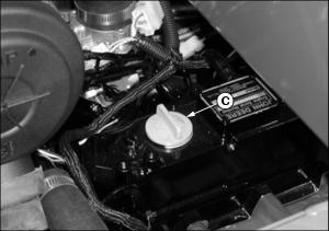 · Always park machine safely before opening engine cover. (See Parking Safely in the Safety Section.)