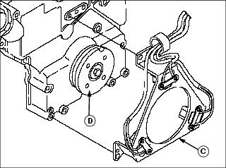 · Remove the three screws holding crankshaft sensor bracket (C) to engine.