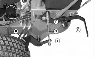 2. Loosen the jam nuts (F) on threaded rod (G) at left side brake.