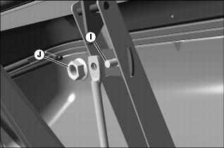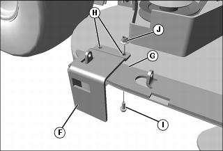 4. Install support bracket and secure with two 10 mm flange bolts (I) and locknuts (J).