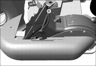 3. Install support bracket (F) onto deck support plate (G), mark holes (H), and remove support bracket (F) and drill two 11 mm (0.43 in.) holes (H) into deck.
