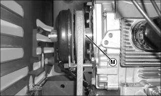 · Install drive belt onto the PTO clutch sheave (M).