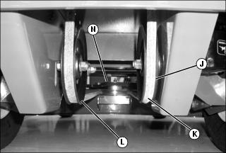 · Install mule drive belt onto the jackshaft assembly sheave (N), and idler pulley (L).
