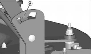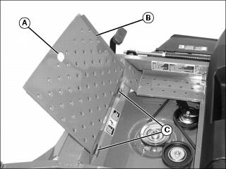· Lift corner of belt shield from drilled stud (A). Rotate shield counterclockwise to clear head pins (C).