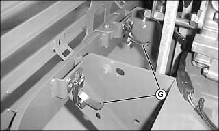 9. Unlatch rear grill by releasing latches (G) securing it to the machine.