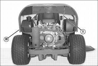 10. Raise rear grill (H) and securely support with prop rod (I).