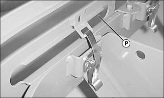 7. Lower rear grill and close latches (P) to secure.