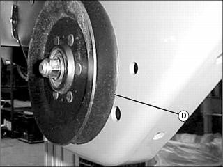 3. Remove belt shield locking rings (D).
