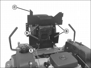 4. Raise seat frame (C) until support rod (E) locks. Secure seat to frame with M8 lock nuts (D).