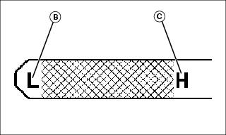 · The height (F) of the rear blade tip should be between 3 - 6 mm (1/8 - 1/4 in.) higher than the front blade tip.