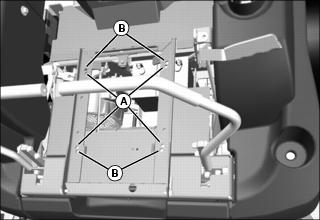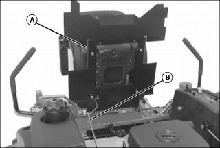 2. Place 76 mm (3 in.) wood blocks (B) under each side of the mower deck.