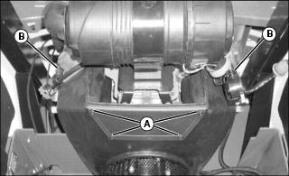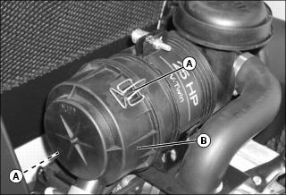 3. Release latches (A) and remove air cleaner canister cover (B).