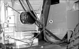7. Remove oil filter (C). Turn filter counterclockwise to remove.