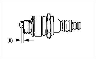 5. Check and adjust spark plug gap (B) to 0.75 mm (0.030 in.).
