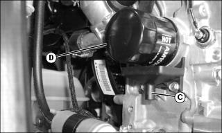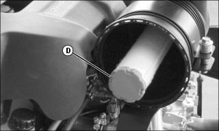 9. Remove oil filter (D). Turn filter counterclockwise to remove.