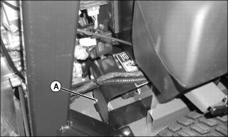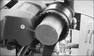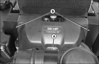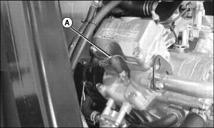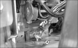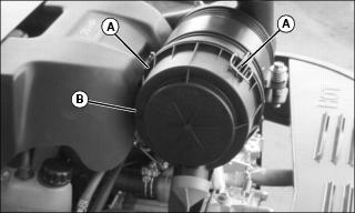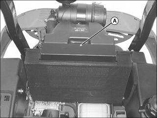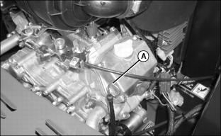 2. Remove locking nut (A) retaining engine cover to the bottom of the air filter housing.