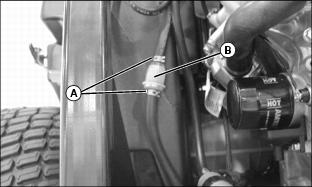 3. Slide hose clamps (A) away from fuel filter (B).