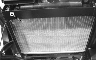 6. Remove dirt and debris from radiator and radiator fins (C).