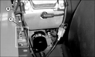 7. Remove oil filter (C). Turn filter counterclockwise to remove.