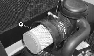 IMPORTANT: Avoid damage! Dirt and debris can enter the engine when removing the air cleaner elements. Service elements only at prescribed intervals.