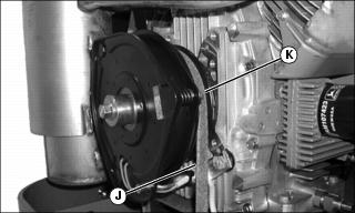 10. Remove mule drive belt (J) from the PTO clutch sheave (K).