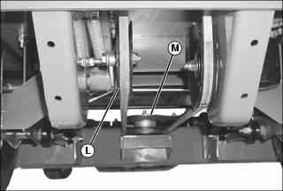11. Remove mule drive belt from idler sheave (L) and jackshaft assembly sheave (M).