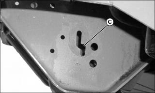 4. Move adjustment idler down and forward into the notch (G) of the Zshaped adjustment slot and tighten through bolt and nut securely.