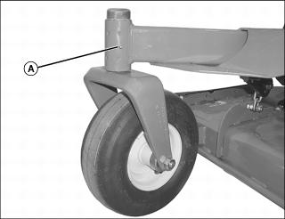 • Lubricate two push arm grease fittings (A), one located on each side of the machine with John Deere Multi-Purpose SD Polyurea Grease or an equivalent.