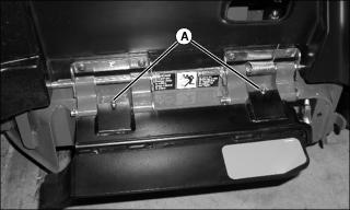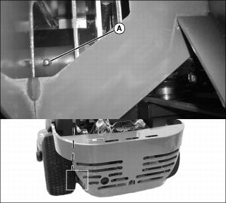 • Lubricate two mower deck discharge gate pivots (A) with John Deere Multi-Purpose SD Polyurea Grease or an equivalent.